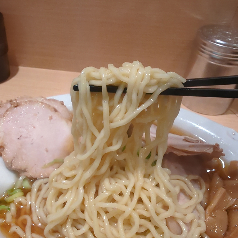 スープはほどよく醤油が立っていて全体によく馴染んでいる。昔ながらのほっとする美味しさ。