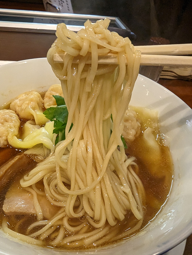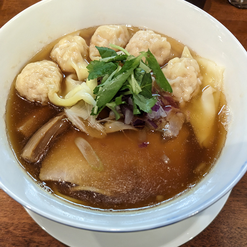 麺や 維新(ラーメン/目黒)すっきりと美味しい煮干しらぁ麺 2022/12/10 ラーメン, 目黒 シェアする ツイート 0 スポンサーリンク 煮干しらぁ麺 このところすっかり醤油に定着していたのでたまには趣向を変えていつもとは違うものを。冬期にお目見えする味噌ラーメンはまだやっていなかったので、煮干しらぁ麺を。トッピングにワンタンを選択。 スープは嫌な苦味は殆どなく、出汁の旨味が感じられる。醤油の香りも程よく立っていてすっきりとバランスの良い仕上がり。 醤油らぁ麺に比べて醤油が弱い分、やや平打ちの麺がスープによく絡む。 具材のチャーシューは柔らかく、ワンタンも美味しい。 麺や 維新 関連ランキング:ラーメン | 目黒駅、白金台駅、五反田駅