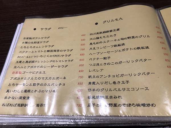 また、料理は黒板に掛かれたおすすめ料理と定番メニューからなっている。