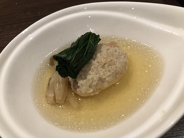 鳥のタタキを団子状にして鶏スープと共に供してくれた。