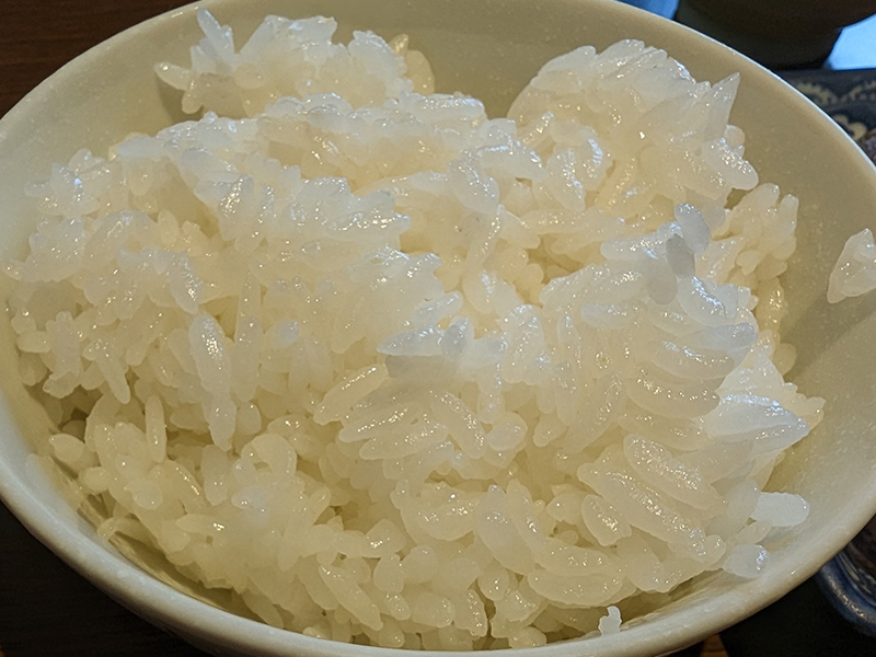 定食の基本とも言えるごはんと汁物が美味しいところがいい。特にお米はとても艷やか。