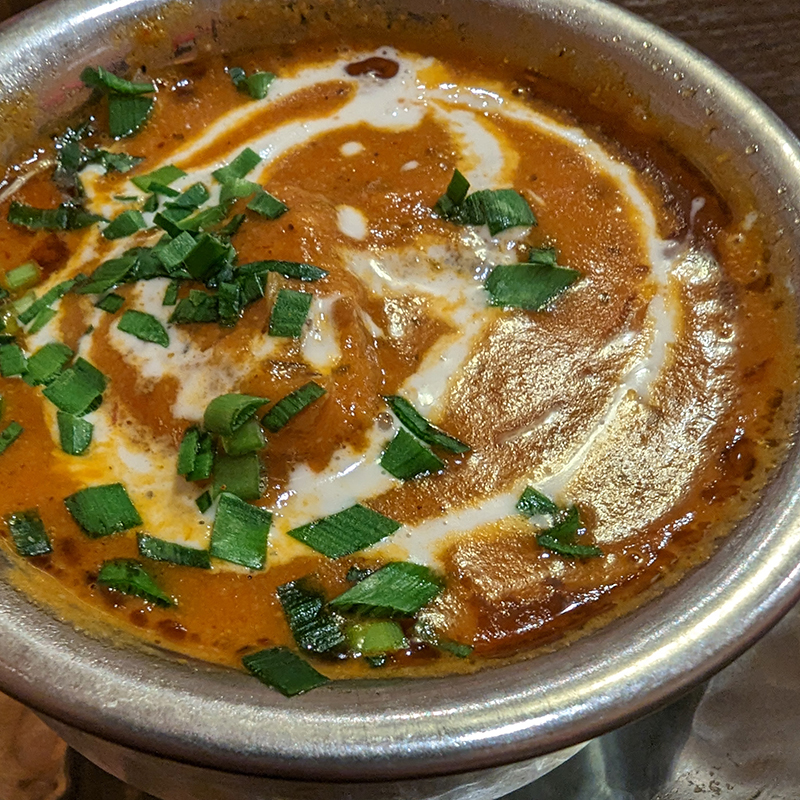 バターチキンは甘さが気になってしまい普段、積極的に頼むことはない。見た目からして一般的なバターチキンに比べて色が淡くなく、ストイックな雰囲気が漂う。甘さはあるのだが嫌味がなく風味も高い。これまで頂いたバターチキンの中でも白眉。