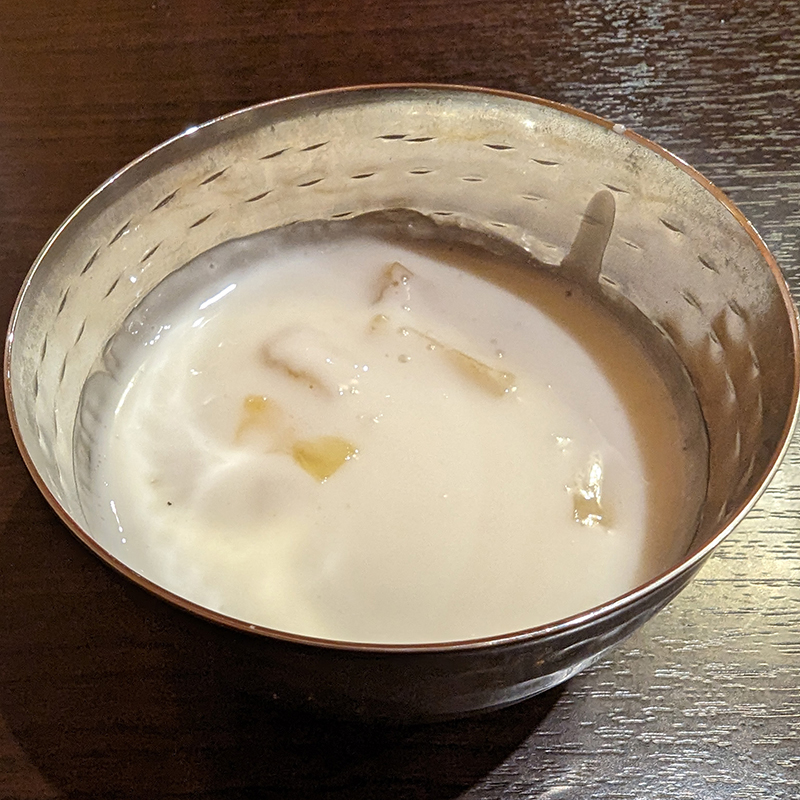 この日はその後に運動が控えていたのでアルコールは自重してラッシーを。