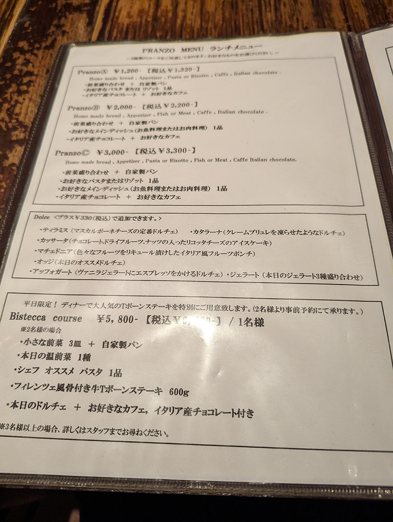ランチメニューを見ると色々と魅力的に映るが初めてなのでパスタランチ1,200円を。