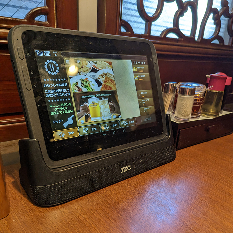 テーブルの上にはタブレットが備え付けられてあり、これで注文を行う。