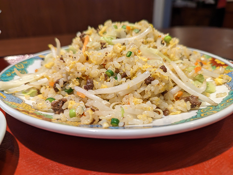パラパラ系ではないが、特にベチャベチャしている訳ではない。むしろ油っぽさはなく、全体的に軽やかで優しい味。塩気も全体に行き渡り、特にもやしのシャキシャキ感が楽しい。