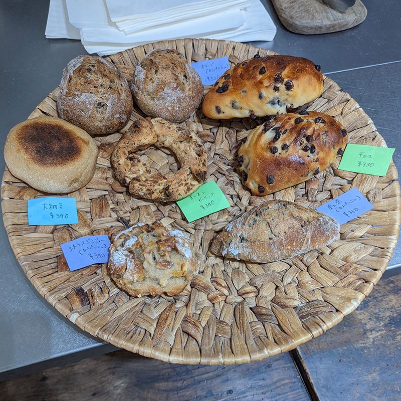 どれも朴訥としたいい面構え。その中から、2個のパンを購入。