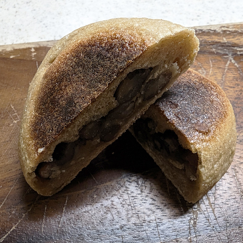 こちらは更に皮が薄くよりクリスピーな食感。中はぎっしりと目が詰まっていて、硬めの食感。大納言も甘さを強調せず素材の持つ自然な甘みを生かしているが、質実剛健なパンにはよくマッチしている。