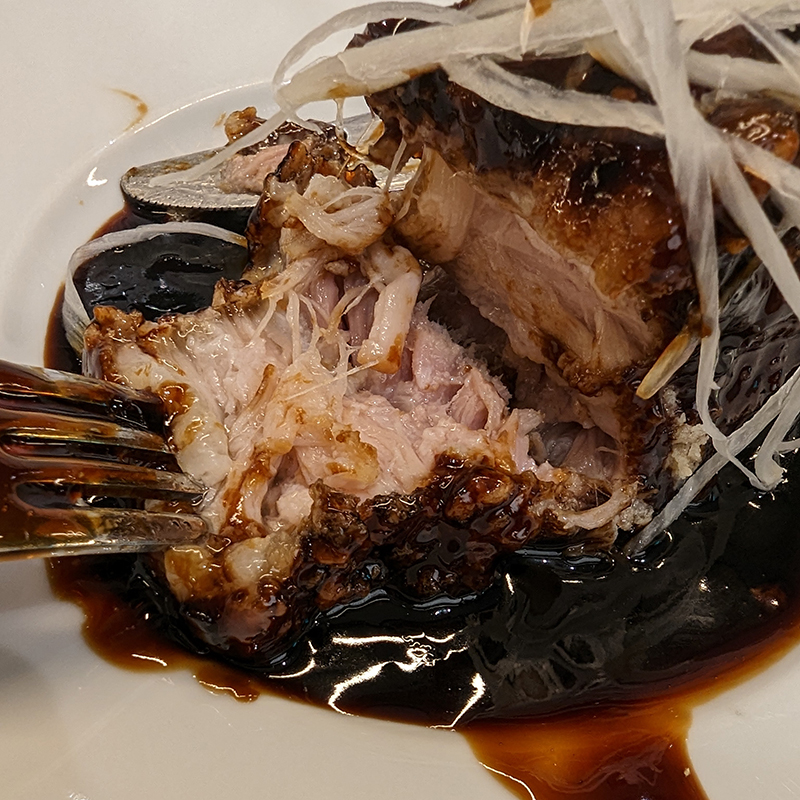 スペアリブに骨がないので食べやすい。肉は厚みがあって食べ応え十分。まわりに何かコーティングしてあってちょっとしたクリスピーな食感を感じた。黒酢ソースは甘さと酸味がバランス良くまとまっている。