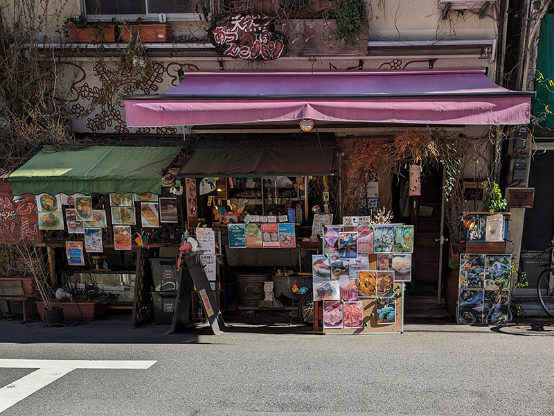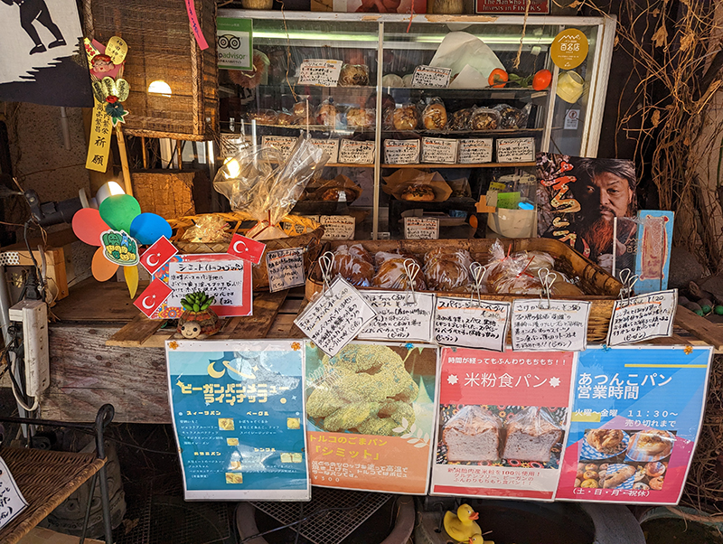 居酒屋との二毛作という不思議なパン屋さん。お店の軒先にパンが陳列されていて写真が沢山ぶら下がっている。そのせいか遠くから見ると駄菓子屋さん?と思わせる趣きを感じる。
