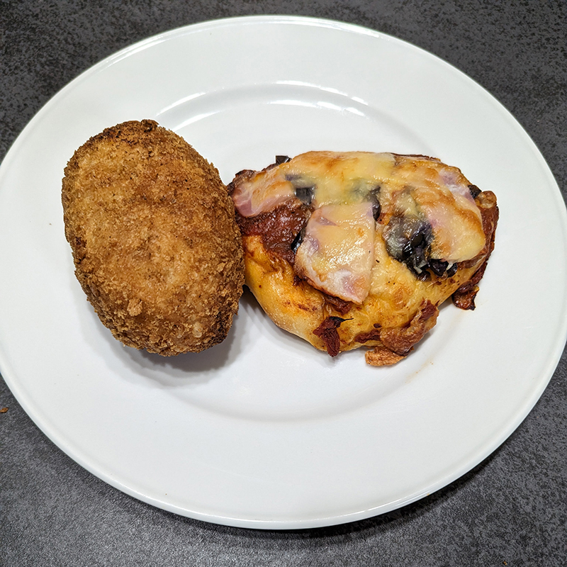 先の写真の右側がこちら。これもご多分にもれず手に持った感触がふんわりとしていて、食べた時の食感もしっとりと。具材はベーコン、揚げなす、チーズに自家製のトマトソースが入っていて、トマトソースもコクがあって美味しい。