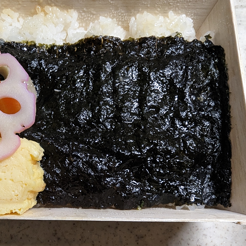 前回は写真に撮れなかった具材を取り除いた海苔の写真。しっとりとして食べやすい。