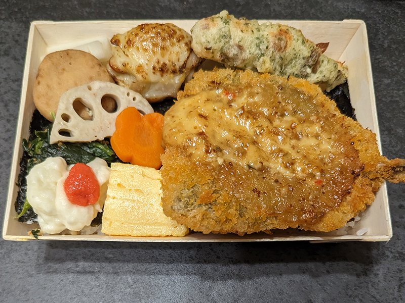 テイクアウトで揚げ物はどうかとも思ったのだが、変に油が残っていないところがいい。自宅なら揚げ物だけ温め直す事もできる。ただ鶏塩麹焼きがひと切れしかないのは少し寂しい。