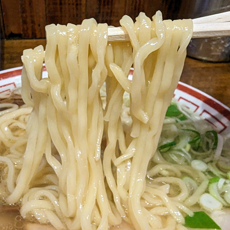 平打タイプの太めの麺は少し柔らかめの茹で加減。