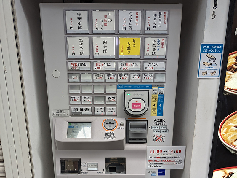 代わりにどこのお店にしようかと思案しているとお店の前の7,8人の行列が目に入った。こちらは系列店を含めて未だ未体験だったのでそのまま列に接続。そして、事前に食券を購入。