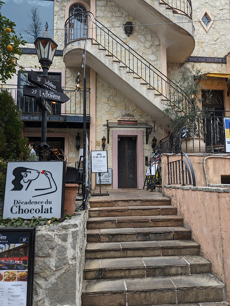 プラチナ通り沿いにある瀟洒な造りの一軒家レストラン。広い店内は一階席と二階席が吹き抜けになっていて開放感があり、入口にはテラス席も用意されている。