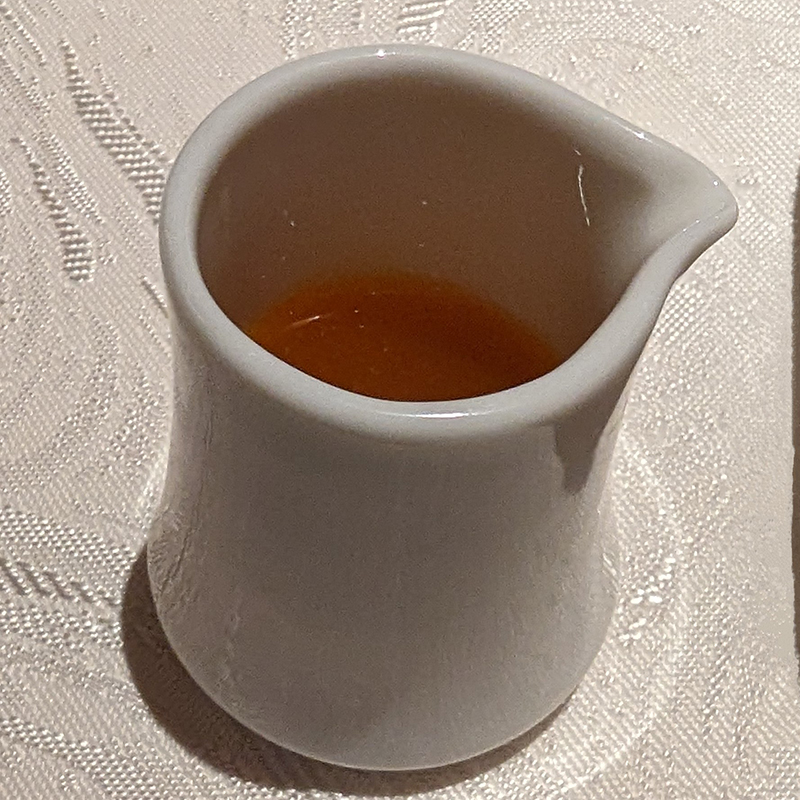 蒸し鶏の上には細かく丁寧に刻まれたネギの薬味が塩加減、ニンニクのほどよい香りとのバランスがよくこれだけでも十分美味しく蒸し鶏が頂ける。勿論、卵黄ソースとの相性もいい。付け合わせのキャベツもいい合いの手になって全体的にボリューム満点。