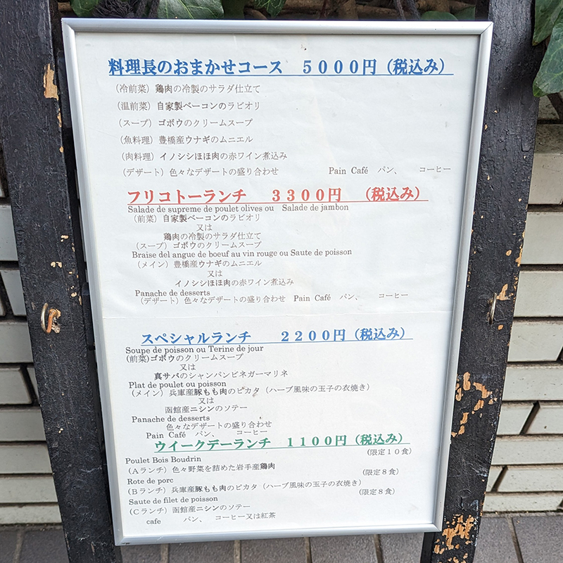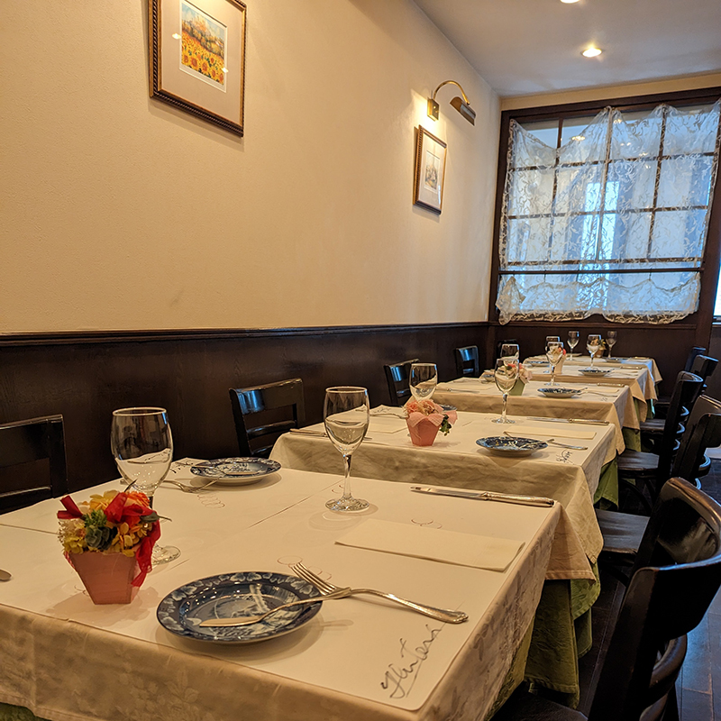 大崎郵便局に近い高速道路沿いにお店を構えている。20年以上この地に根付いたフレンチレストランでシェフはラムロワーズやエノテカピンキオーレといった3つ星レストランで修行した経歴の持ち主。
