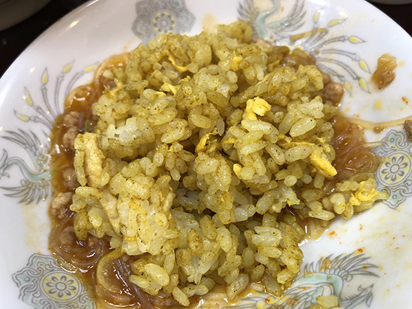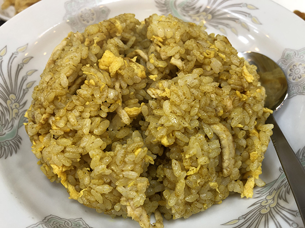 最後は麺類でいくか、炒飯でいくか悩ましい。バリエーション豊富なチャーハンメニューを見ていたら自然と炒飯に心惹かれた。その中でも、こんなメニューがあったっけ?という咖喱炒飯が気になった。