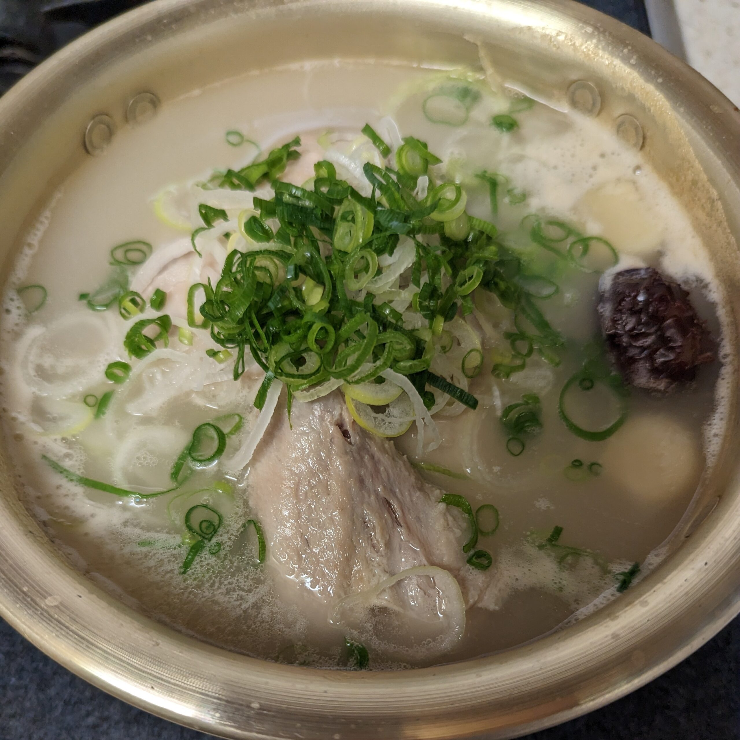 1kgとずっしりと重く、その分、スープもたっぷりと入っている。味も雑味の少ない上品な仕上がりでかえってソウル市場のものよりも繊細さが感じられる。こちらのお店で一番人気の商品というのにも納得がいく。後からわかったことだが、韓国広場でもソウル広場の参鶏湯が売られていたらしい。