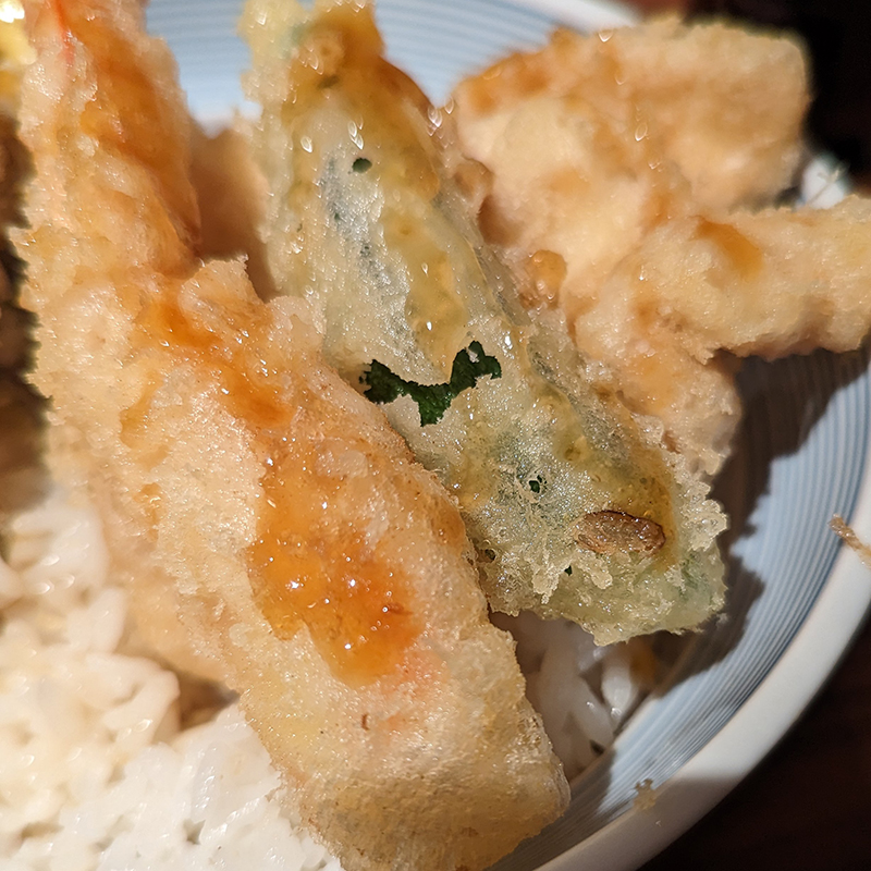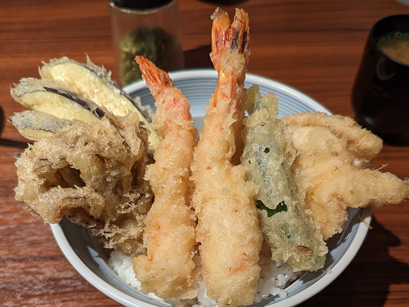 具材は海老が2尾になす、舞茸、いんげん、白身魚という構成。