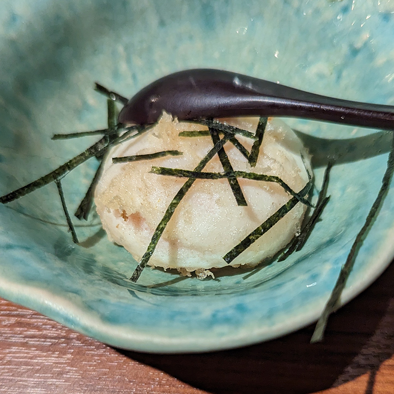まずはそのままで。衣はてんぷらというよりフリットに近いが天つゆが掛かっていない分、サクサクとした食感が楽しめる。