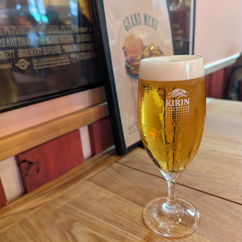 この手の高級ハンバーガーショップでは肉厚のパテを焼くのでどうしても出てくるまでに時間が掛かるものだが、来客を見越して事前にパテを焼いているのか、こちらのお店は驚異的に早い。ビールをひと口頂いたところで早くも供された。