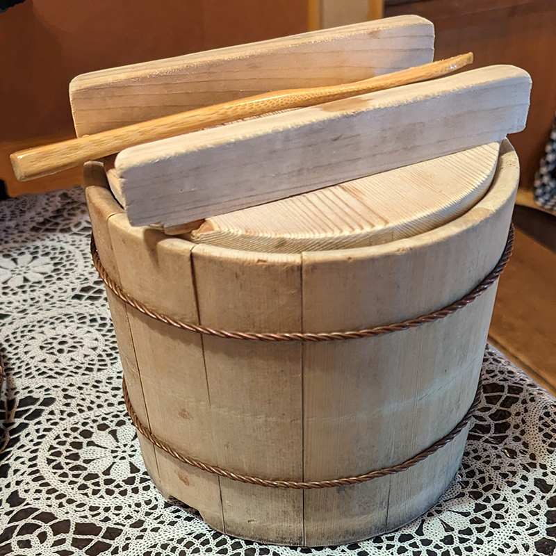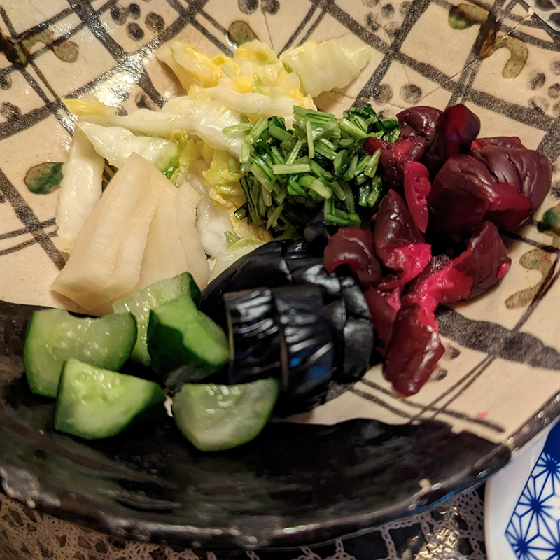 真打の前にお櫃に入ったごはんと、盛り沢山のお漬物、小鉢のひじきの煮物、ちりめん山椒がセットされていく。ちりめん山椒は言うに及ばず、漬物はどれも美味しく、これだけでもごはんが進む。