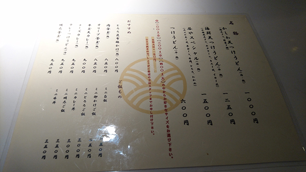 うどんの量が標準、中盛り(1.5玉)、大盛り(2玉)から選択でき、いずれも値段は変わらない。