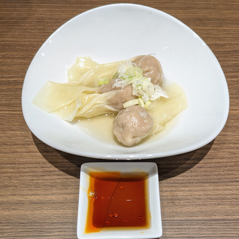 3個で400円なら比較的良心的な方だろうか。ラーメン前を考慮してラーメンは少し間を置いて出すようにお願いした。尾びれが長い割につけダレの器があまりに小さくて食べづらい。ワンタンは肉っ気がしっかりとして餡の香りもいい。