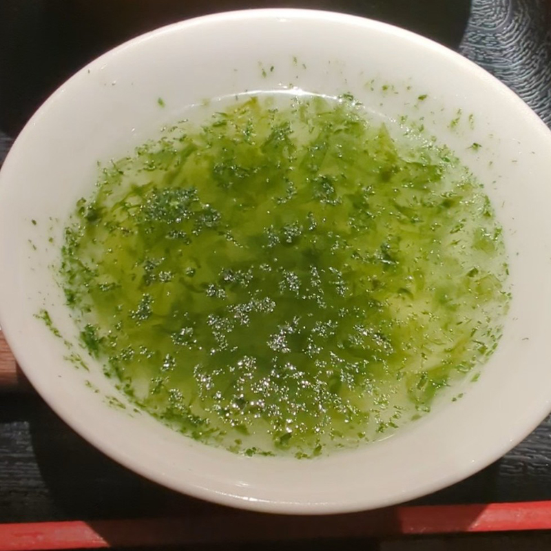 青のりのスープは爽やかな香りでいい合いの手になる。冷たい普洱茶も茶葉から入れらたものを出している様だ。