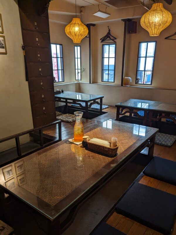 店内はカウンターとテーブル席に掘りこたつの小上がりがりのある小体な造りで中国レトロ調の趣きのあるモダンな雰囲気。