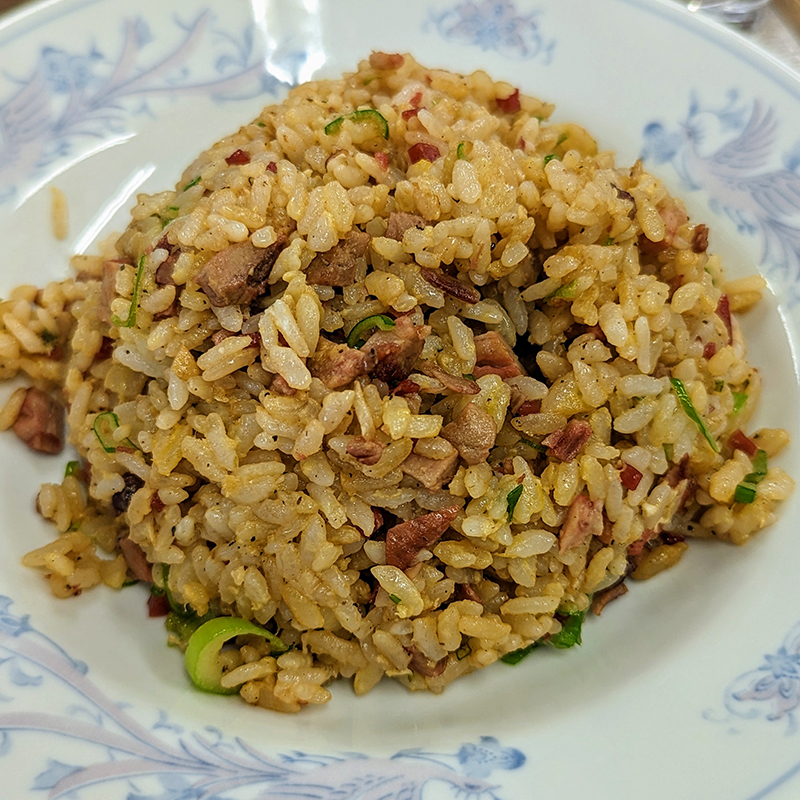 そのチャーシューの効果もあって彩が美しい。パラパラではなく、ややべちゃなタイプだが塩気は全体にいきわたっていてバランスがいい。