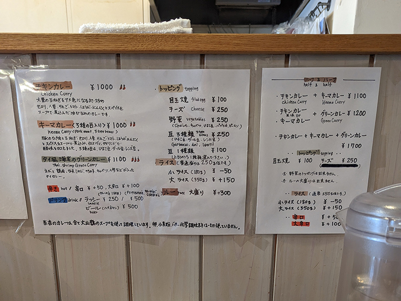 店内はスパイスの香りが充満していて、カウンター席の後ろに設置された椅子で待っている間もじわじわと毛穴が開き体温が上昇していくのがわかる。恐るべしスパイスの威力。
