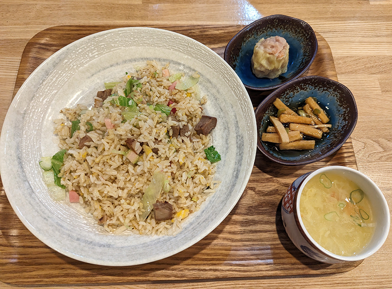 チャーハンはパラパラ系で火加減、味の馴染み具合も申し分ない。具材にもひと工夫あってレタスのシャキシャキ感で食感を愉しませてくれて、肉もチャーシューの他に塩漬けされた豚肉が入っていてこれがいいインパクトになっていた。