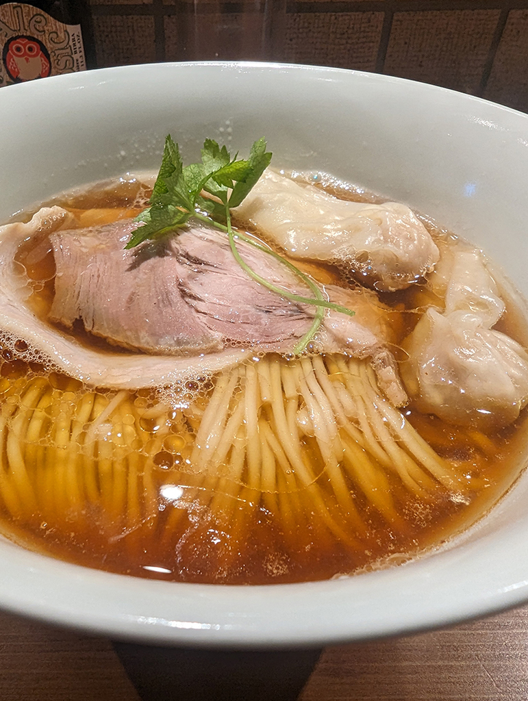見た目を裏切らないクリアなスープで口当りも円やか。全体のバランスが良く素直に美味しい。