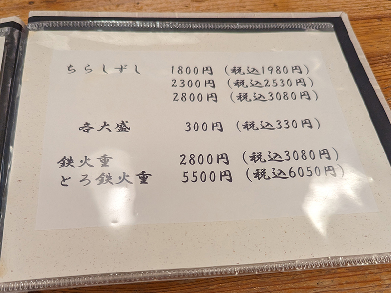 メニューを見ると握り、ちらしともに1,980円から。