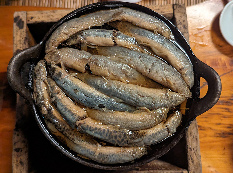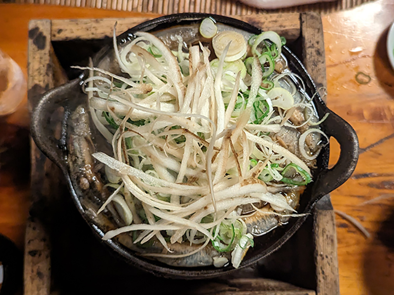 普段、あまり食べることはないが、どぜうが初めてというメンバーもいたのでこちらも追加で注文した。こちらは火には掛けずに出来上がったものが供される。甘辛い味付けで日本酒やご飯のお供にいい。