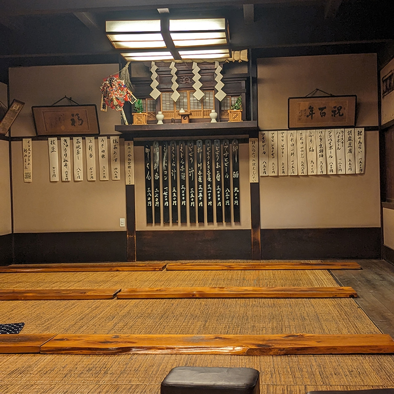 丁度、夜の部も一巡しそうな時間帯だと思ったが、なかなか列が進まない。結局、1時間近く待ってようやく店内に案内された。いつもは2階や地下になることが多かったが、一階の座敷席は今回が初めて。頼めば小さな椅子も用意してくれる様だ。