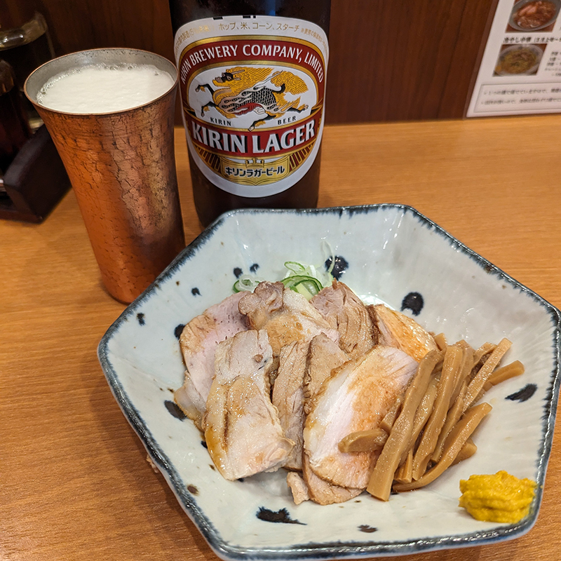 いつもの様にラーメン前にチャーシューをおつまみにビールを頂いた。