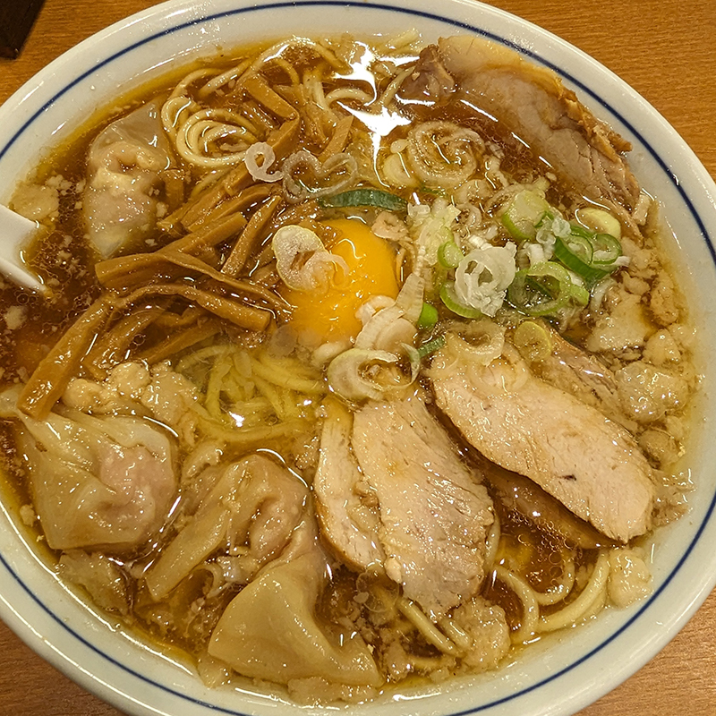 背脂プラス味濃いめでお願いした。特に頼んでいないのだが、玉子が入っていたのはご愛嬌。ワンタンが入ると多少味が薄まるので味濃いめにしたのだが、今回は玉子も入ったので、味濃いめにしておいて正解。