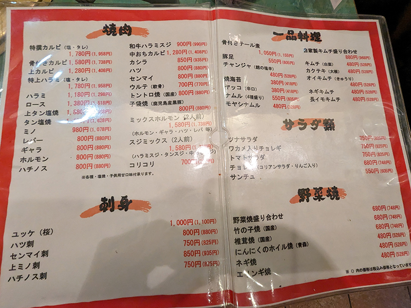 調べて貰うとわかるが、この界隈は北の影響が強いエリアで、そのため一般的な焼肉屋とは少し文化が異なる。その一例が卓上に調味料がないこと。普通なら焼肉のタレやコチュジャンが置かれているが、お願いしない限り出てこない。というのも焼肉はヤンニョムを使ったもみダレなので、その必要がないのである。