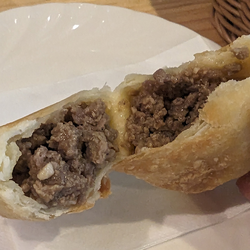 こちらは揚げたタイプではなく焼いたタイプでロシアの西側にあるピロシキのタイプ。具材は肉か野菜が選べるのだが、肉を選択すると見事に肉しか入っていない。ちょっと想像とは違ったが、十分に美味しい。