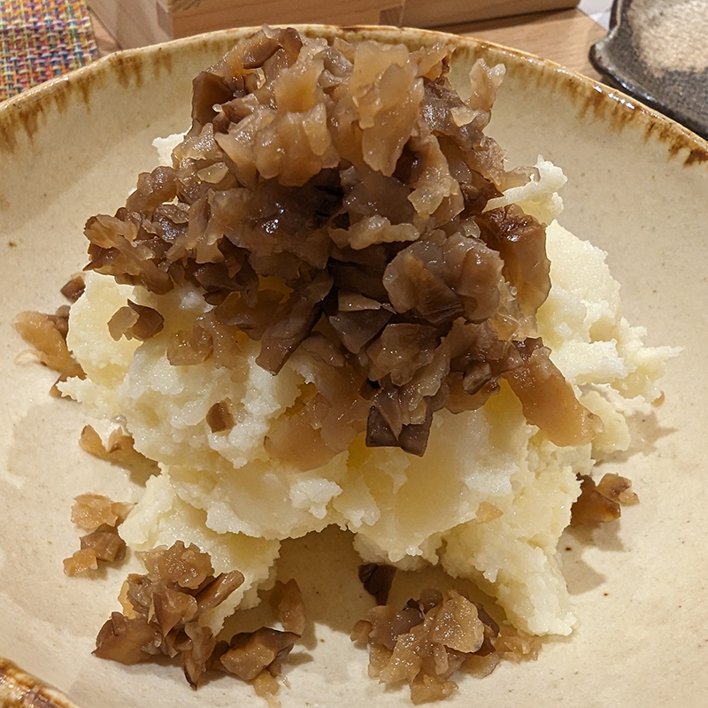 ポテトサラダの上にはいぶりがっこが。薫香がよくマッチしていてお酒が進む。