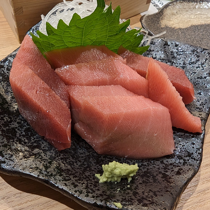 ここでの肴にはインドマグロの刺身は外せない。豊洲市場から仕入れたインドマグロを使用していてクオリティが高く値段を考えればコスパは高い。わさびも本わさびを使用している。