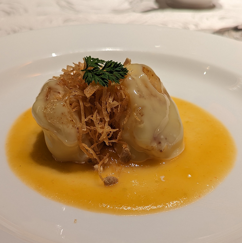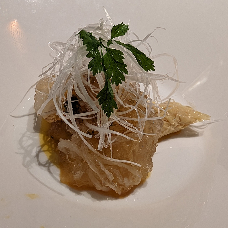 ふかひれとしての存在感はそこまでではないが、繊細かつ上品な味付けで前菜としてはいいスタート。それと同時にこの後の料理に期待を抱かせてくれるひと品。