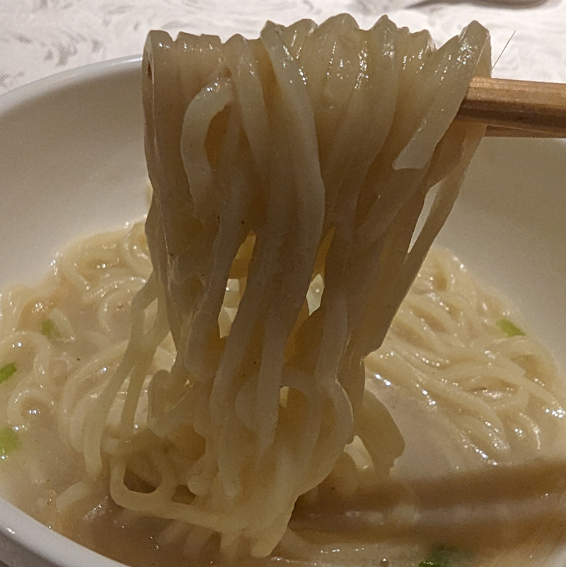 麺はやや平打ちの中太タイプ。もっちりとしてスープが良く絡む。