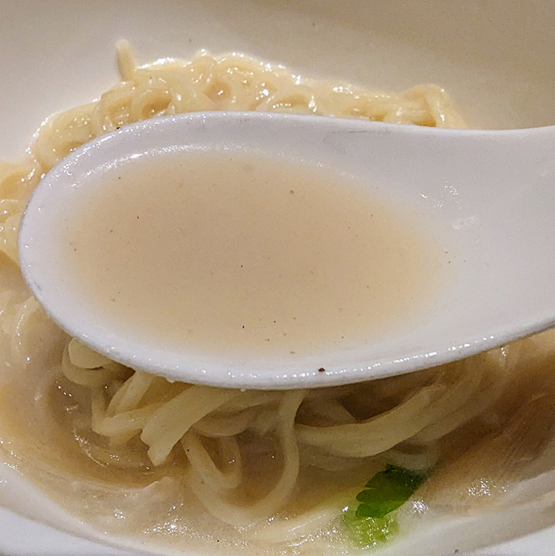 スープは塩味だが深みがあって美味しい。寒い日には特に温まる。