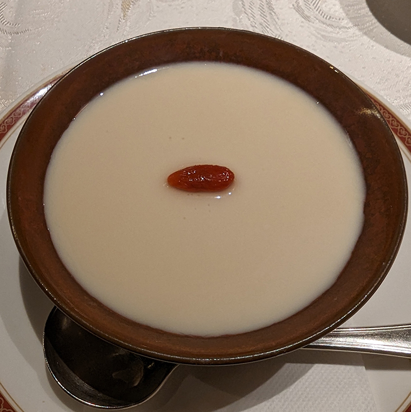 デザートは定番とも言えるアンニン豆腐。見た目から茶色みを帯びているだけに味わいも濃厚で一般的な杏仁豆腐とは別格の味わい。