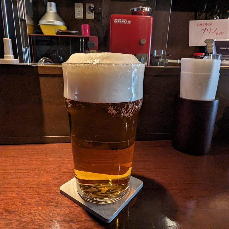 現在の店舗になってからは酒類も扱っているのでまずはビールを。コーヒー同様、ゆっくりと丁寧に入れてくれる。